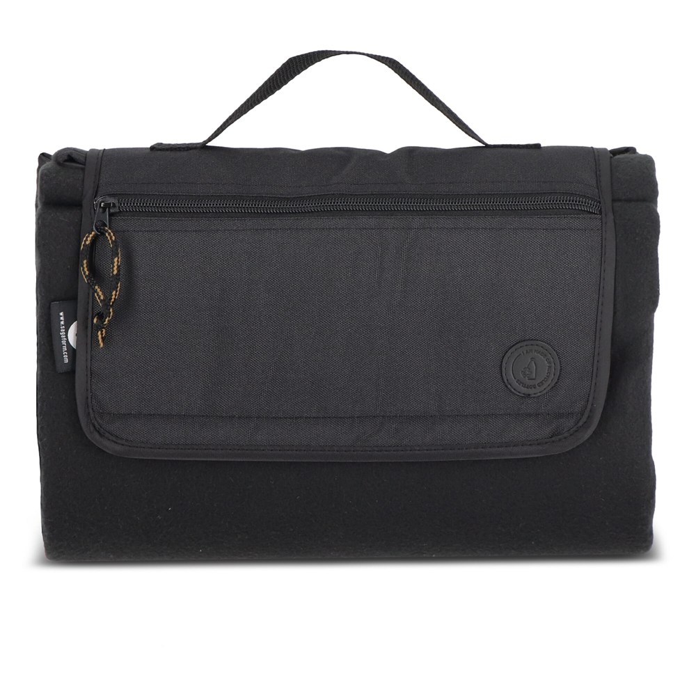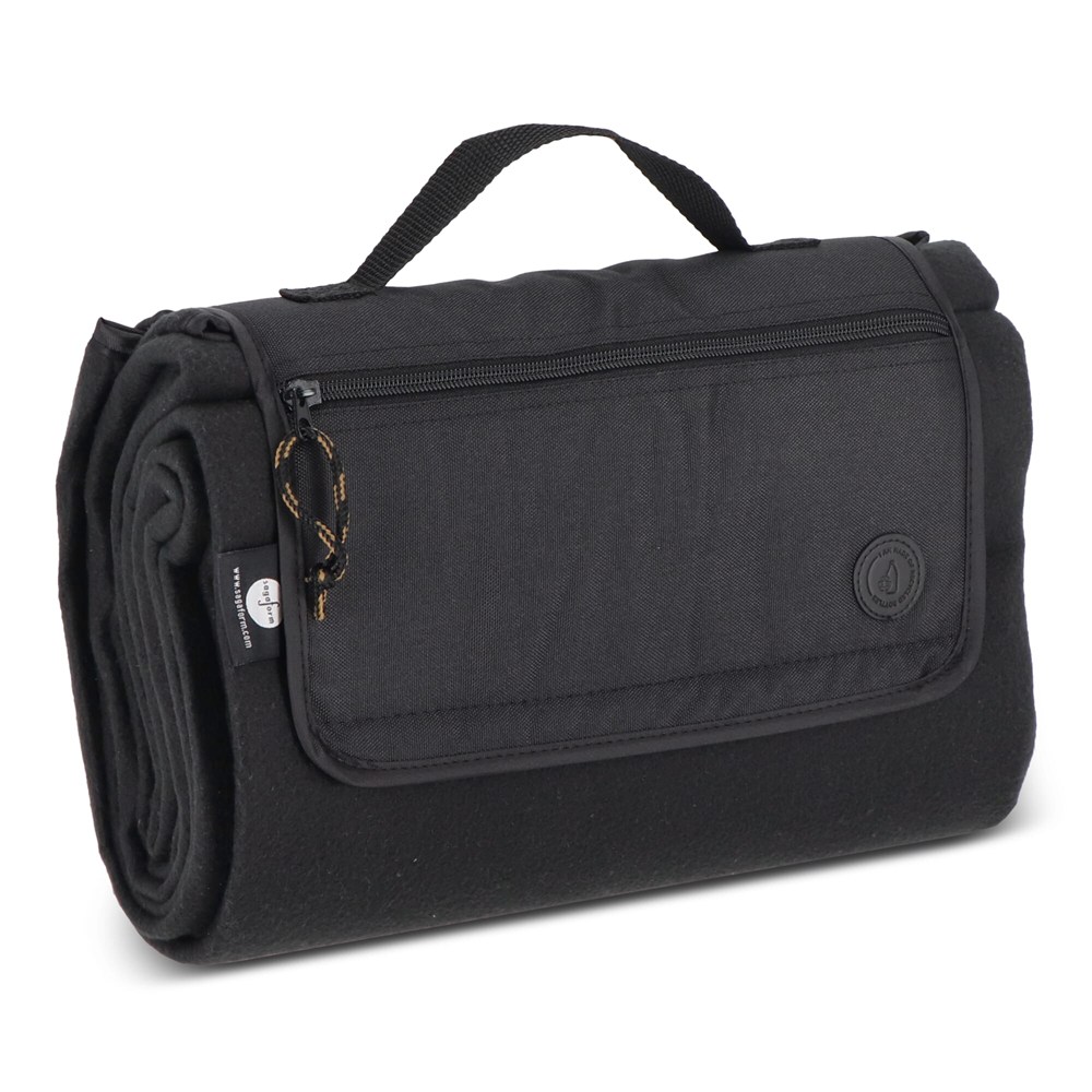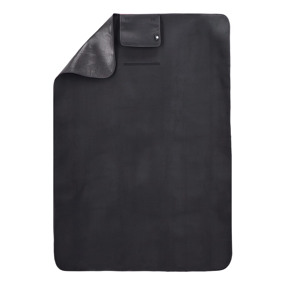 Luxuriöse und sportliche Picknickdecke mit einer wasserabweisenden Unterseite und einer Reißverschlusstasche zum Verstauen von Gegenständen. Erhältlich in grünem rPET-Material. Die Decke ist leicht aufzurollen und kann mit einem Griff getragen werden. Größe aufgeklappt: 165x128 cm.