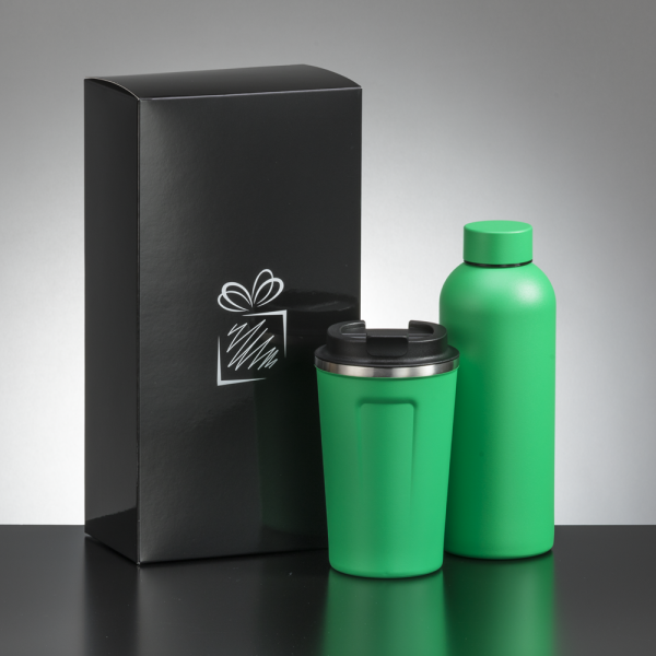 Dies ist ein praktisches Set für Outdoor-Aktivitäten und enthält einen Nordic-Kaffeebecher (350 ml Fassungsvermögen) und eine Nordic-Thermalwasserflasche (500 ml Fassungsvermögen). Der Nordic-Thermobecher bietet hervorragende Wärmeisolationsfähigkeiten (bis zu 12 Stunden bei niedrigerer Temperatur, bis zu 6 Stunden bei höherer Temperatur). Die Doppelwand besteht aus hochwertigem POSCO 18/8 Edelstahl in Lebensmittelqualität. Die Nordic-Thermoflasche ist aus hochwertigstem koreanischem POSCO 18/8 Edelstahl gefertigt und verbindet Haltbarkeit mit einer eleganten Ästhetik. Die solide Pulverbeschichtung beider Artikel sorgt für Widerstandsfähigkeit gegen mechanische Beschädigungen und garantiert zudem einen sicheren Halt. Die Produkte sind für den Lebensmittelkontakt zertifiziert und BPA-frei. Das Set ist in einer eleganten schwarzen Kartonverpackung verpackt.