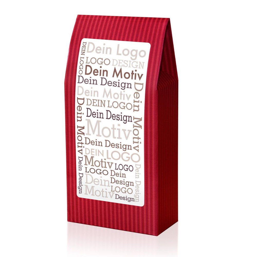Ab 100 Stück mit Ihrem Motiv im 4c Druck auf dem Etikett der Faltschachtel, ab 2.500 Stück bedrucken wir den Faltschachtelkarton vollflächig: Genuss im XXL-Format. Ein Mandelkern, umhüllt von feinster belgischer Schokolade, bedeckt mit einem Hauch Kakaopulver. Die Kombination aus fein-herben Kakao mit zart-schmelzender Schokolade und einer knackigen Mandeln ist einfach unwiderstehlich. Sie suchen eine andere Größe? Dieses Premium Präsent ist auch als Faltschachtel und Mini Faltschachtel erhältlich.