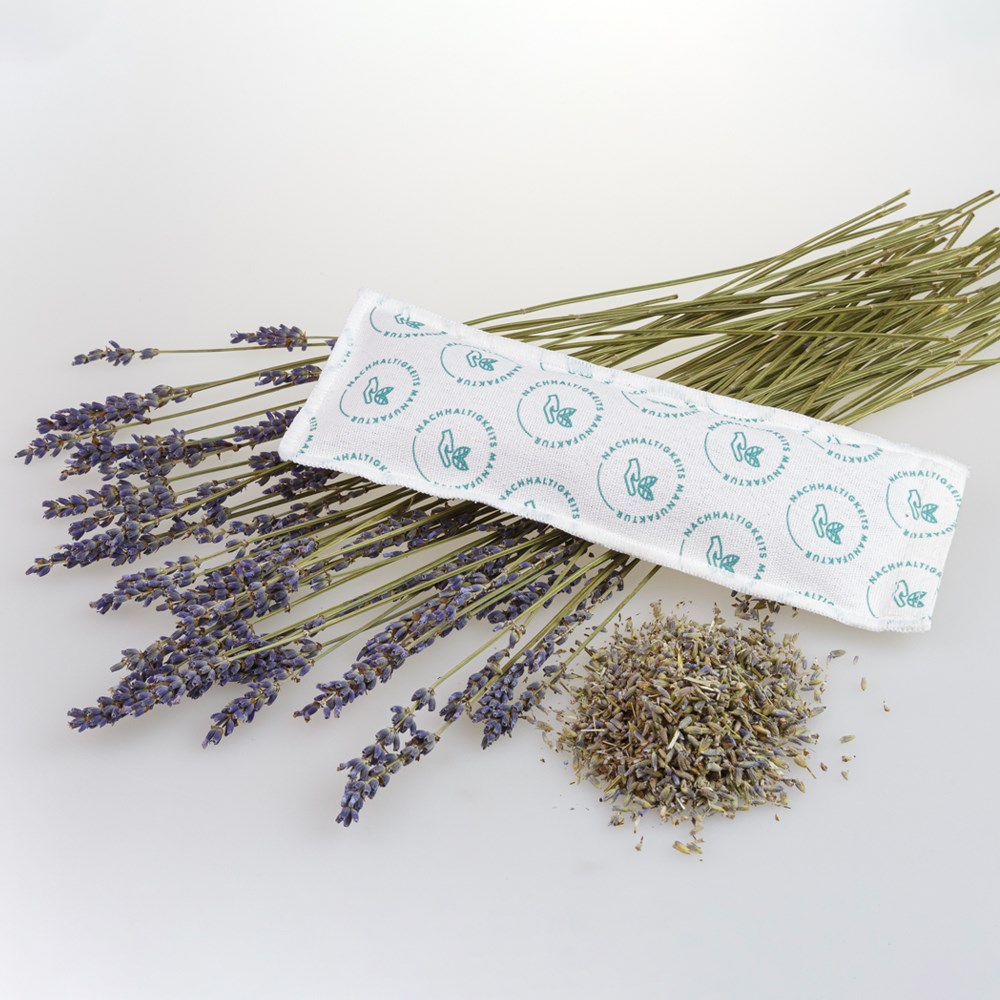 Individuell gestaltetes Duftsäckchen einzeln mit getrocknetem Lavendel. Größe: 70 x 200 x 17 mm Materialien: Baumwolle, Klett, Inhalt: 26 g getrockneter Lavendel aus Europa Textildruck: Logo oder Motiv als Streumuster auf dem Baumwollsäckchen.