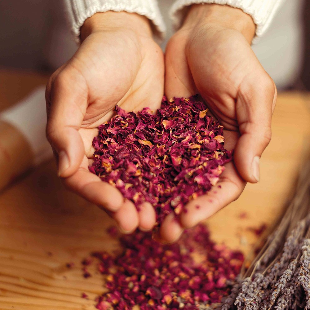 Material: Baumwolle, Rosenblätter