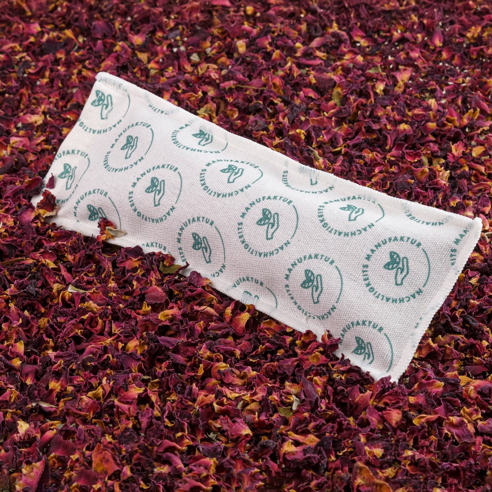 Individuell gestaltetes Duftsäckchen einzeln mit getrockneten Rosenblüten. Größe: 70 x 200 x 17 mm, Materialien: Baumwolle, Klett, Inhalt: 12 g getrocknete Rosenblätter aus Europa, Textildruck: Logo oder Motiv als Streumuster auf dem Baumwollsäckchen.