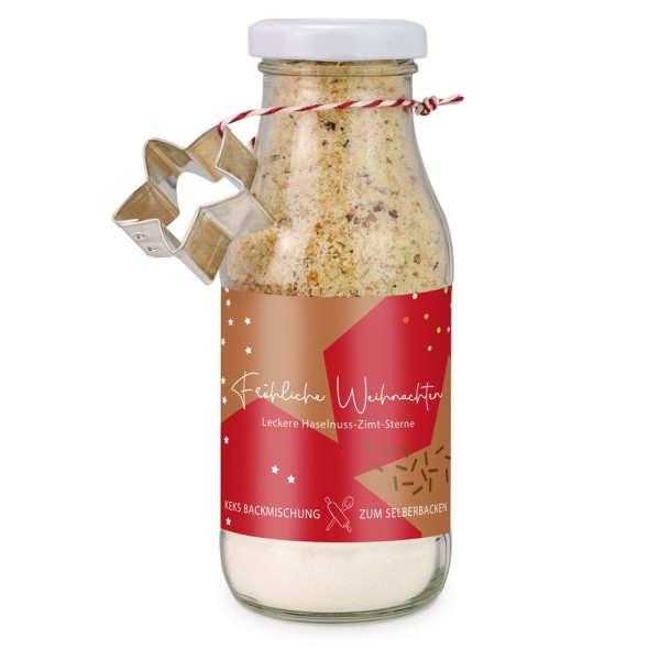 Weihnachtsplätzchen zum Selberbacken. Kekse frisch aus dem Ofen: Inhalt in eine Schüssel geben, Teig verrühren, Sterne ausstechen, backen und genießen.