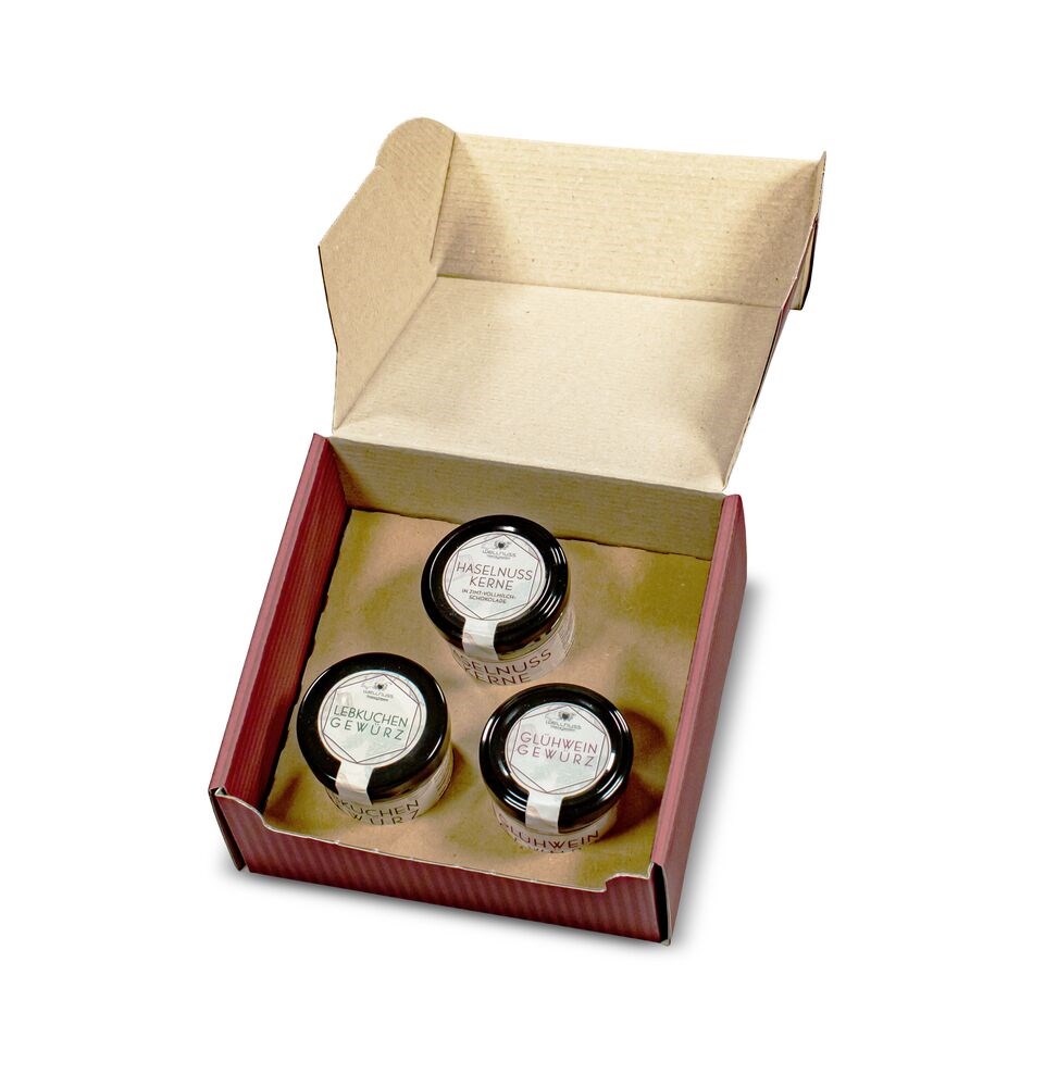 Geschenkkarton mit 3 Weihnachts-Spezialitäten im Glas