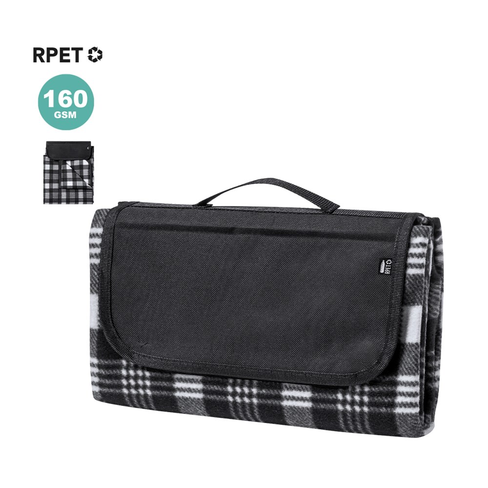 Picknickdecke in Premiumqualität aus 160 g / m2 RPET-Polyester, hergestellt aus recyceltem Kunststoff, um die Wiederverwendung von Plastikmüll zu fördern und zur Nachhaltigkeit des Planeten beizutragen. Misst 120x150cm, mit einer Seite zum Sitzen in einem zweifarbigen Schottenmuster mit weichem Griff. Seite mit Bodenkontakt aus widerstandsfähigem PEVA. Einfach zu falten und kompakt in der Größe, enthält es einen Tragegriff und eine Klappe mit Klettverschluss, mit dem unverwechselbaren RPET auf dem Etikett.